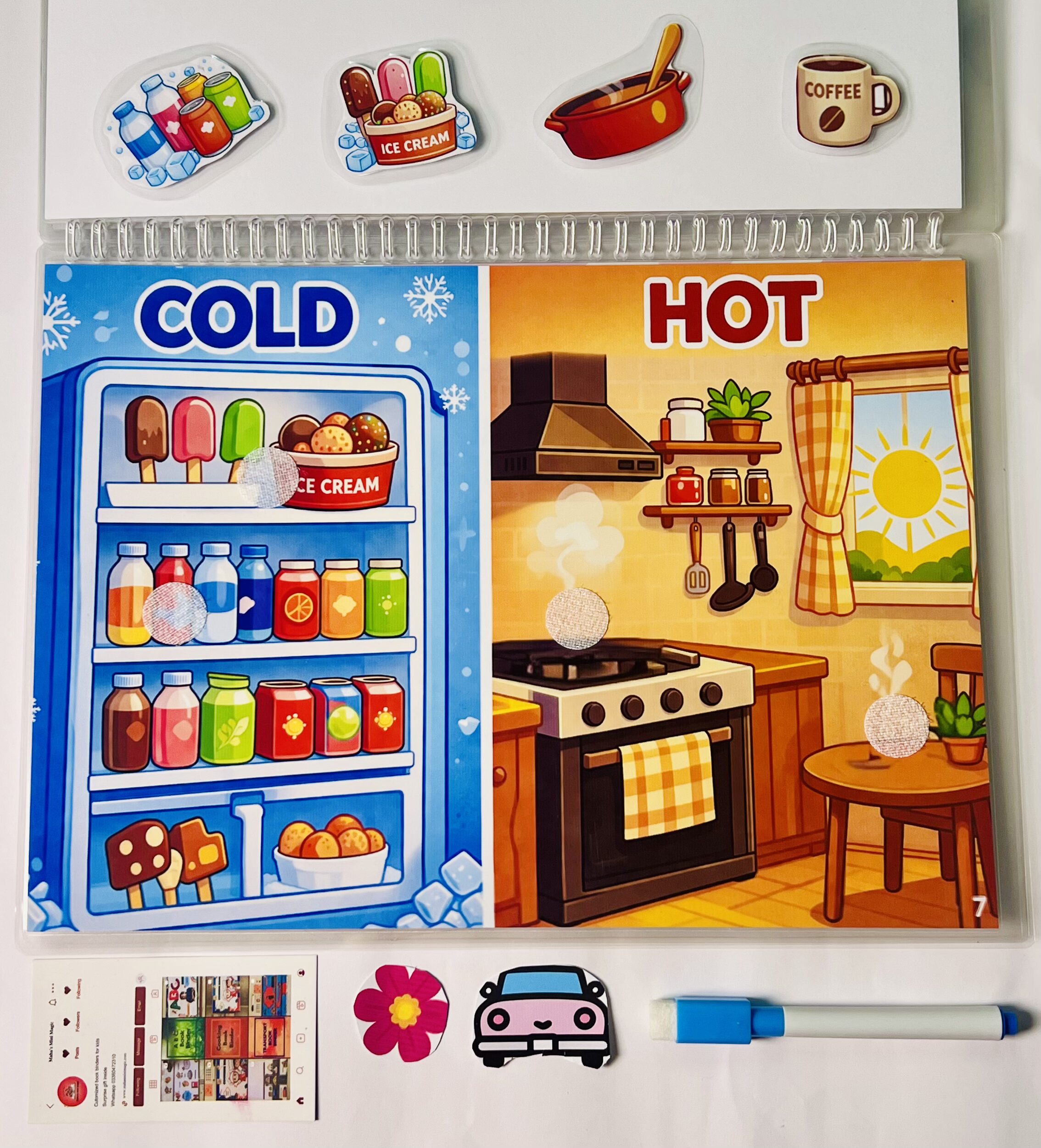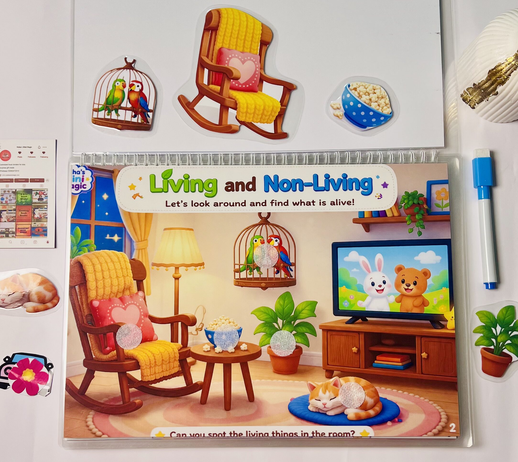 From living and non-living things to day and night, seasons, hot and cold, and even helping a plant grow 🌱, each page is thoughtfully designed to build your child’s curiosity and basic understanding of the world around them.